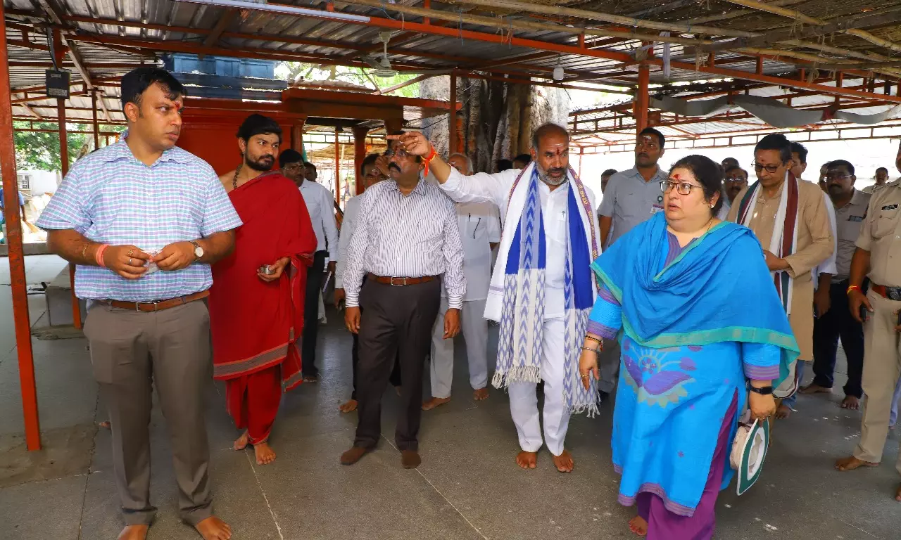 Principal secretary (endowments) Shailaja Ramaiyer inspected the temple complex on Thursday alongside Government Whip Aadi Srinivas, endowments commissioner K. Sridhar and district collector Sandeep Kumar Jha. Welcomed with poorna kumbham honours, the delegation offered special prayers before reviewing project sites.