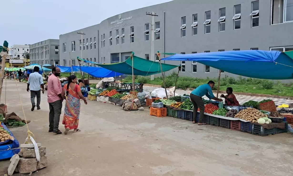 K. Ramulu, another vegetable merchant, alleged that the customers were not interested in coming to the integrated market due to the bad atmosphere. It prompted then to again sell veggies on roadside.