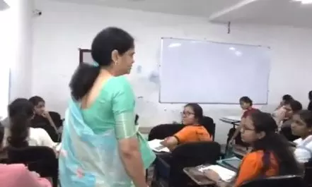 Taking a serious note of the students’ problems, Commission Chairperson Nerella Sharada conducted a surprise inspection at the college in Madhapur and interacted with students.