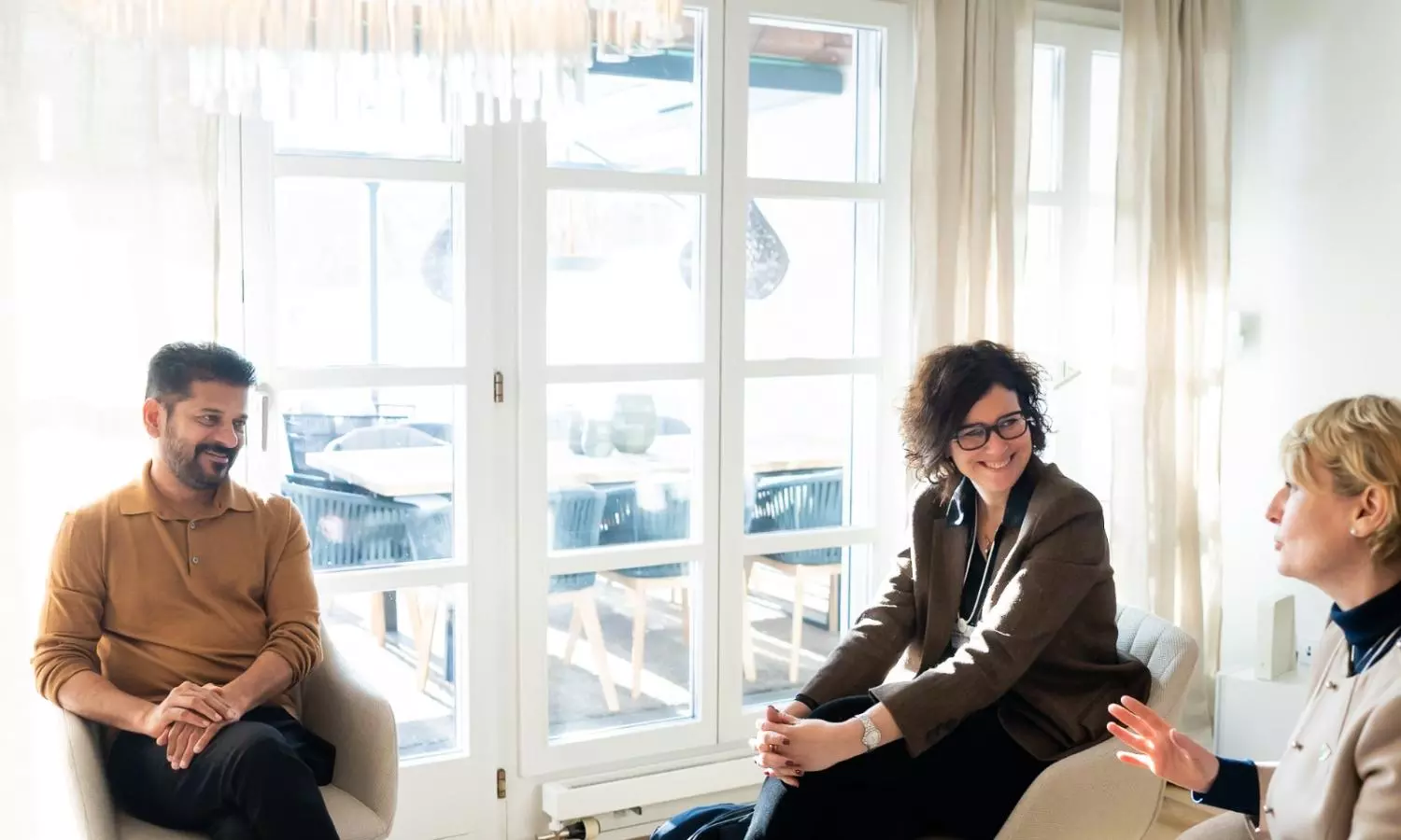 Telangana CM Revanth Reddy engages in a constructive discussion with the Chief Minister of Council of Vaud, Switzerland, during World Economic Forum in Davos