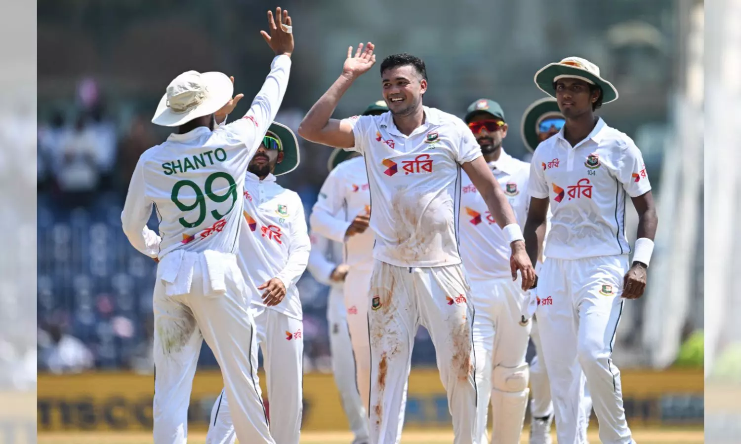 The Bangladesh pacer grabbed three wickets (3/55) -- Jadeja, Ashwin and Akash Deep.