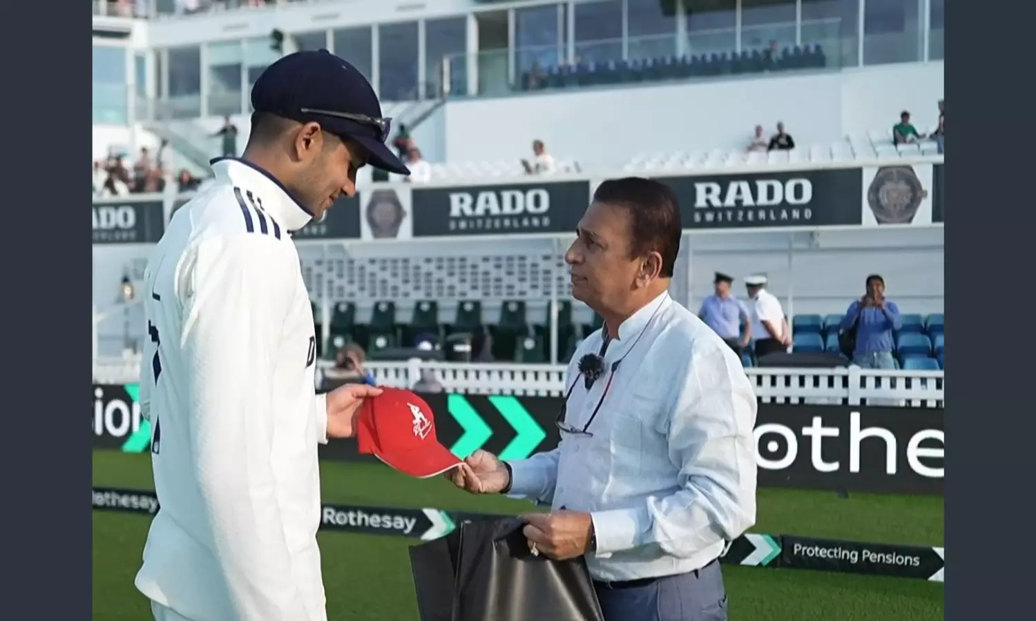"I have got a gift for you in anticipation of you going past (me). At least you got something to aim for in the next series. It is just a little gift. It is a shirt with SG initials, someone made it for me, I am giving this to you, but I don't know if it will fit you. This is a cap which I give to very few people with my signature. All the best," Gavaskar said after meeting Gill in a video posted by Sony Sports on X.