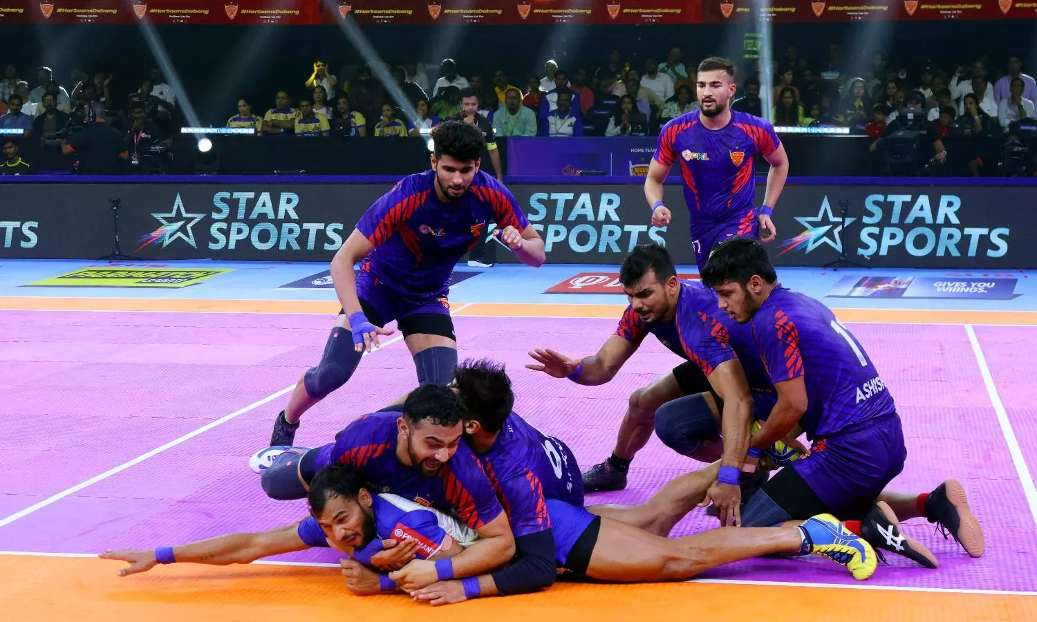 Hyderabad: Dabang Delhi K.C. were at their fluent best as they brushed away the Tamil Thalaivas, winning the game with a scoreline 39-26 at the GMCB Indoor Stadium. It was a ruthless defensive effort from the Dabang Delhi K.C., with both Yogesh and Ashish Malik recording High 5s, while Ashu Malik carried on his exceptional form to record another Super 10 in PKL 11.