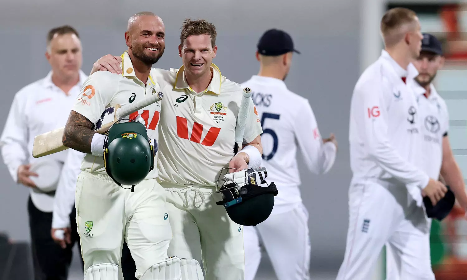 Steve Smith took a brilliant reflex catch to swing momentum just before Ben Stokes' defiant half-century ended in a rush of England wickets Sunday, then he hit the winning runs in the second cricket test to give Australia a 2-0 Ashes lead. Day 4 was a tale of two captains. Set a target of 65 for victory after England was bowled out for 241 in the second innings, Australia raced to an eight-wicket win in 10 overs either side of a 20-minute interval as serious storms brewed to the southwest. Jofra Archer was bowling around 150 kph (93 mph) under the lights and it only fired up Smith. There were some theatrics involving the Australia captain and England's strike pace bowler, with Smith telling Archer to bowl faster after ducking a bouncer. He then ramped him for a boundary and hit the next ball for a six to bring up 1,000 test runs at the Gabba. With Australia at 63-2 and needing just two runs to win, Smith hit a six to finish it and finished unbeaten on 23 from nine deliveries. Jake Weatherald was not out on 1— 18.2 overs — to erase the first-innings deficit. The Australian attack bowled a tight line and length and mixed it up with some short-pitch deliveries in an attempt to entice the usually aggressive England batters to have a go. Stokes and Will Jacks (41) resisted the temptation for the entire first session, knowing that a wicket would expose the tailenders. It was a completely different approach to England's usual attack-at-all costs mentality that has attracted wide criticism in the first two Ashes tests so far. The seventh-wicket pair put on a 96-run stand to get England to the brink of the night session, but that ended when Smith — Australia's stand-in captain — took a stunning one-hander diving to his left at slip off Michael Neser's bowling to dismiss Jacks. That was the momentum changer. The slide then happened quickly, with England losing four wickets for 17 runs to be all out for 241 in its second innings and Neser finishing with a five-wicket haul. Stokes took a single to reach his 50 from 148 bal