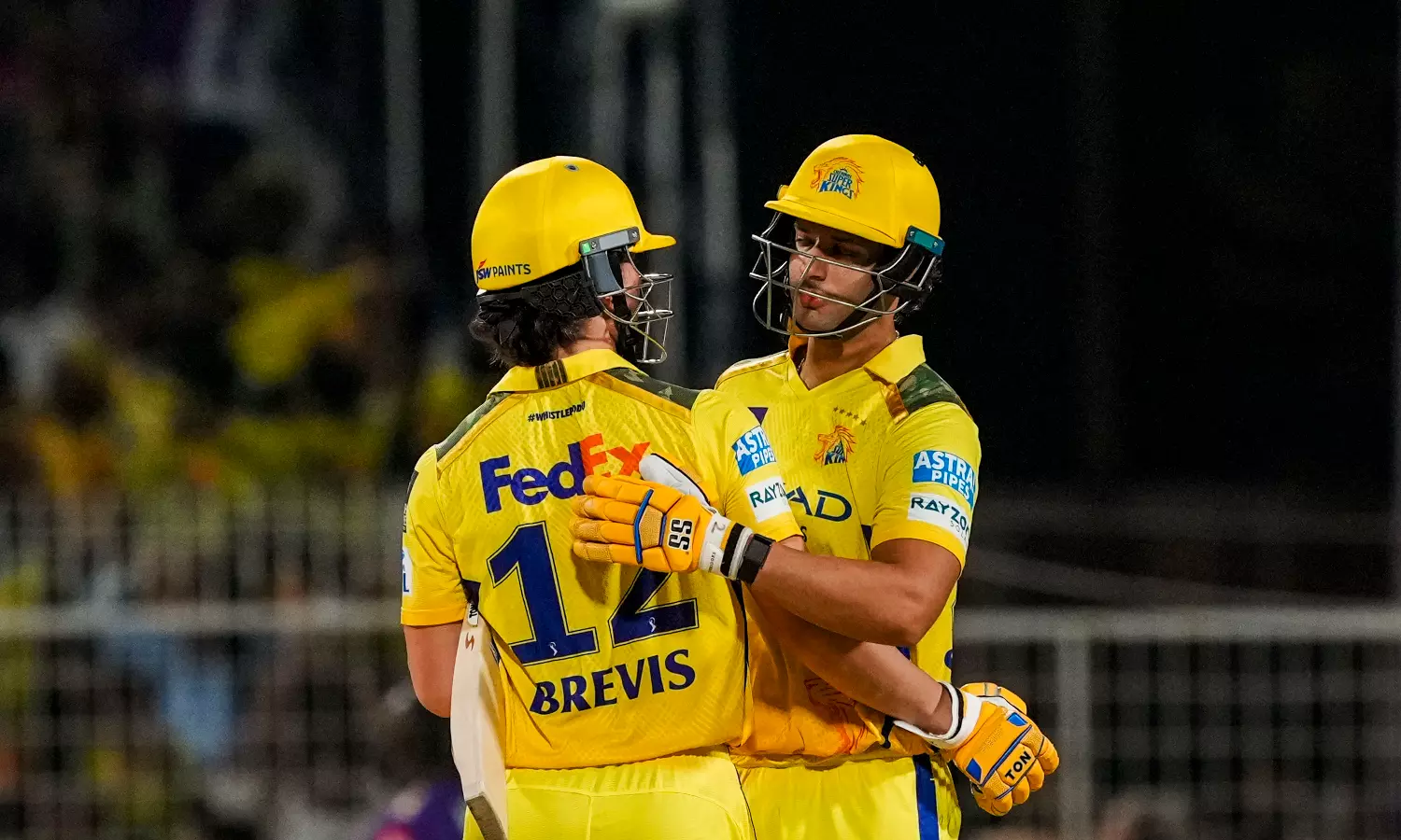 KOLKATA: Chennai Super Kings beat Kolkata Knight Riders by two wickets to send the defending champions virtually out of the IPL play-offs contention here on Wednesday.CSK chased down the target of 180 with two balls to spare with Dewald Brevis top-scoring with 52 off just 25 balls while Shivam Dube and captain MS Dhoni chipped in with 45 and 17 not out respectively.