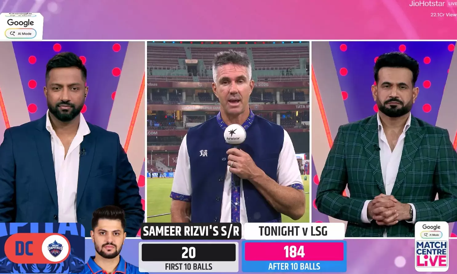 Delhi Capitals got off the mark in their opening game of TATA IPL 2026 with a nervy win against the Lucknow Super Giants. Speaking on JioHotstar’s ‘Google Search AI Mode Match Centre Live’, JioStar experts Kevin Pietersen and Irfan Pathan shared their thoughts on Sameer Rizvi’s coming-of-age knock, Rishabh Pant’s batting position, and DC’s last-minute change in the batting order, sending in Tristan Stubbs ahead of David Miller.