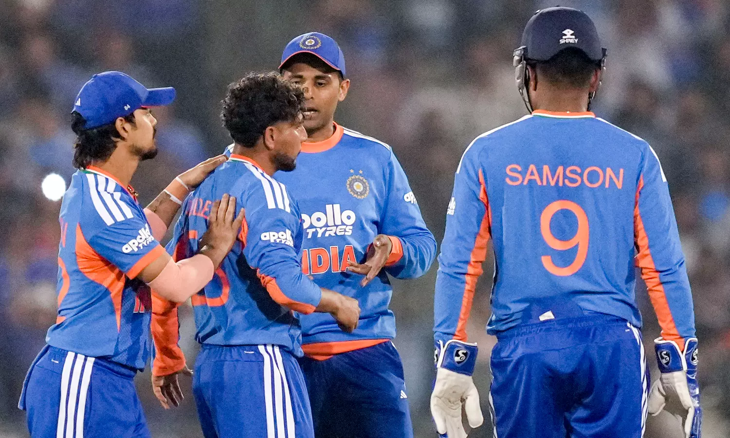 New Zealand: 208 for 6 in 20 overs (Rachin Ravindra 44, Mitchell Santner 47 not out; Kuldeep Yadav 2/35).