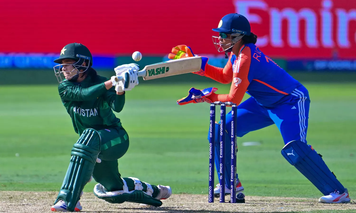 India's wicketkeeper Richa Ghosh takes a catch to dismiss Pakistan's captain Fatima Sana during the ICC Women's T20 World Cup cricket match between Pakistan and India. (Photo by AFP)