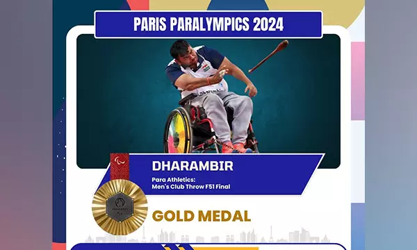 Paris: Dharambir smashed the Asian record to claim the gold medal while his compatriot Pranav Soorma clinched the silver as Indian club throwers dominated the men's F51 event at the Paralympics here on Wednesday.