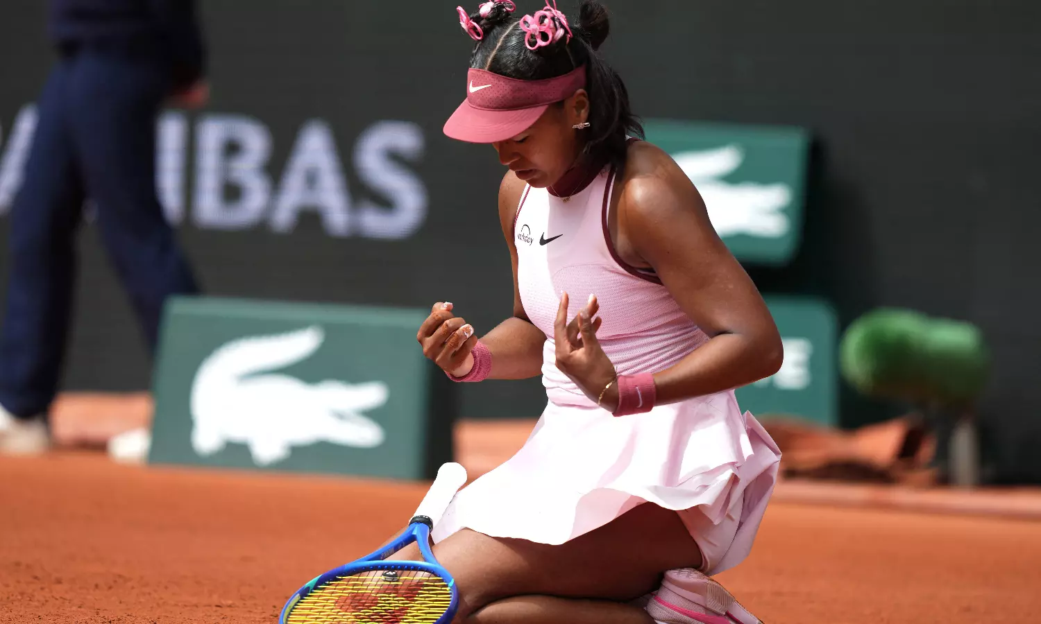 Naomi Osaka still wore the pink accessories in her hair inspired by “sakura” — cherry blossoms — and there were streaks on her cheeks where tears had rolled, when she sat down for a French Open news conference after her first-round loss to Paula Badosa on Monday.