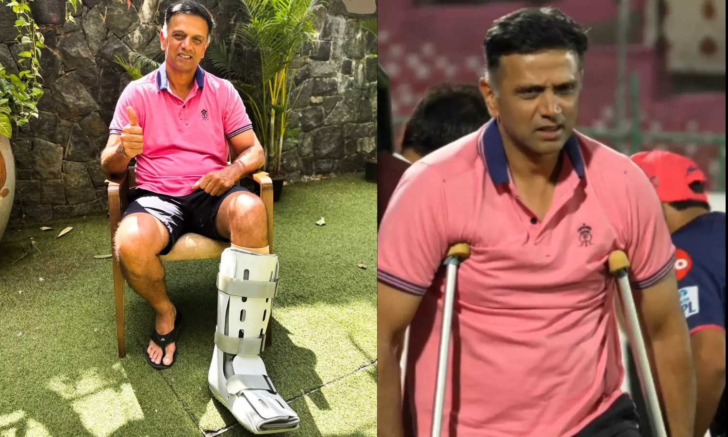 On Thursday, the social media handles of the former IPL champion side posted a filmy video of Dravid walking with clutches and meeting players at the Jaipur international cricket stadium.