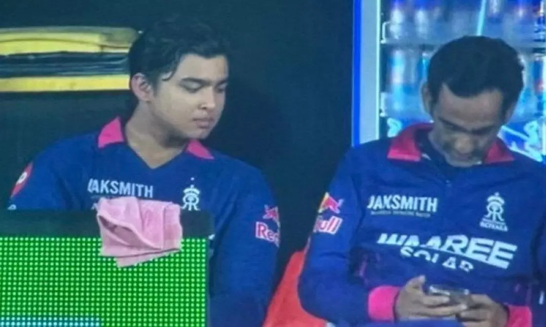 Bhinder was found scrolling his smart phone with teen sensation Vaibhav Sooryavanshi by his side.