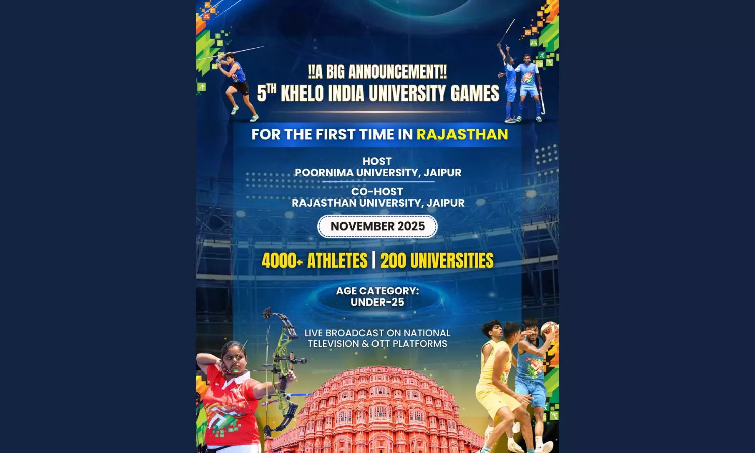 Poornima University and Rajasthan University will jointly host the Under-25 multi-sport Games which will see participation of more than 200 Universities.