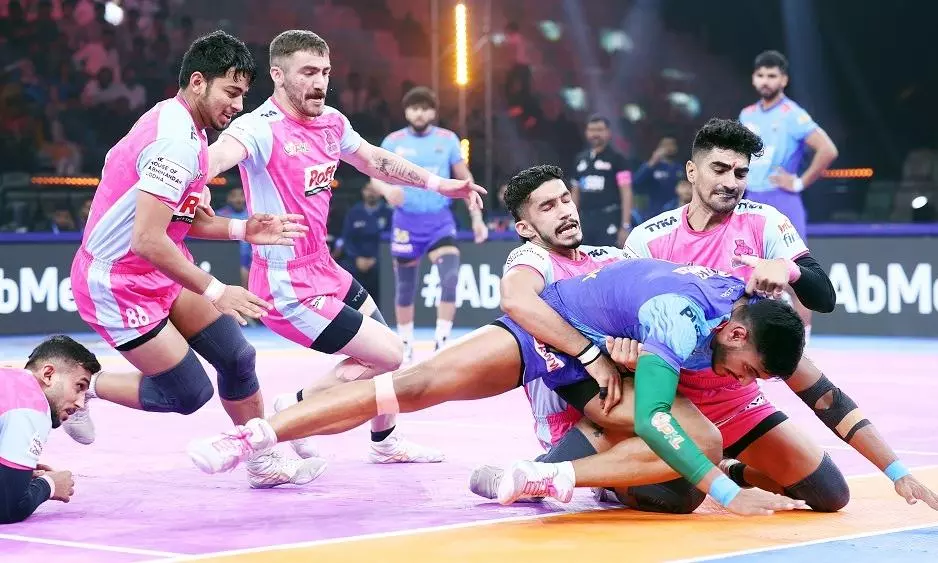 New Delhi: Riding on a brilliant performance from Nitin Kumar, who scored a Super 10, the Jaipur Pink Panthers defeated the Bengal Warriorz by 30–38 at the Thyagaraj Indoor Stadium in Delhi on Saturday.