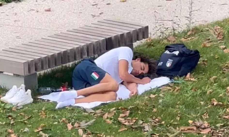 Saudi Arabia rower Husein Alireza has posted a picture on Instagram of the Italian swimmer sleeping on a towel under a tree in the park.
