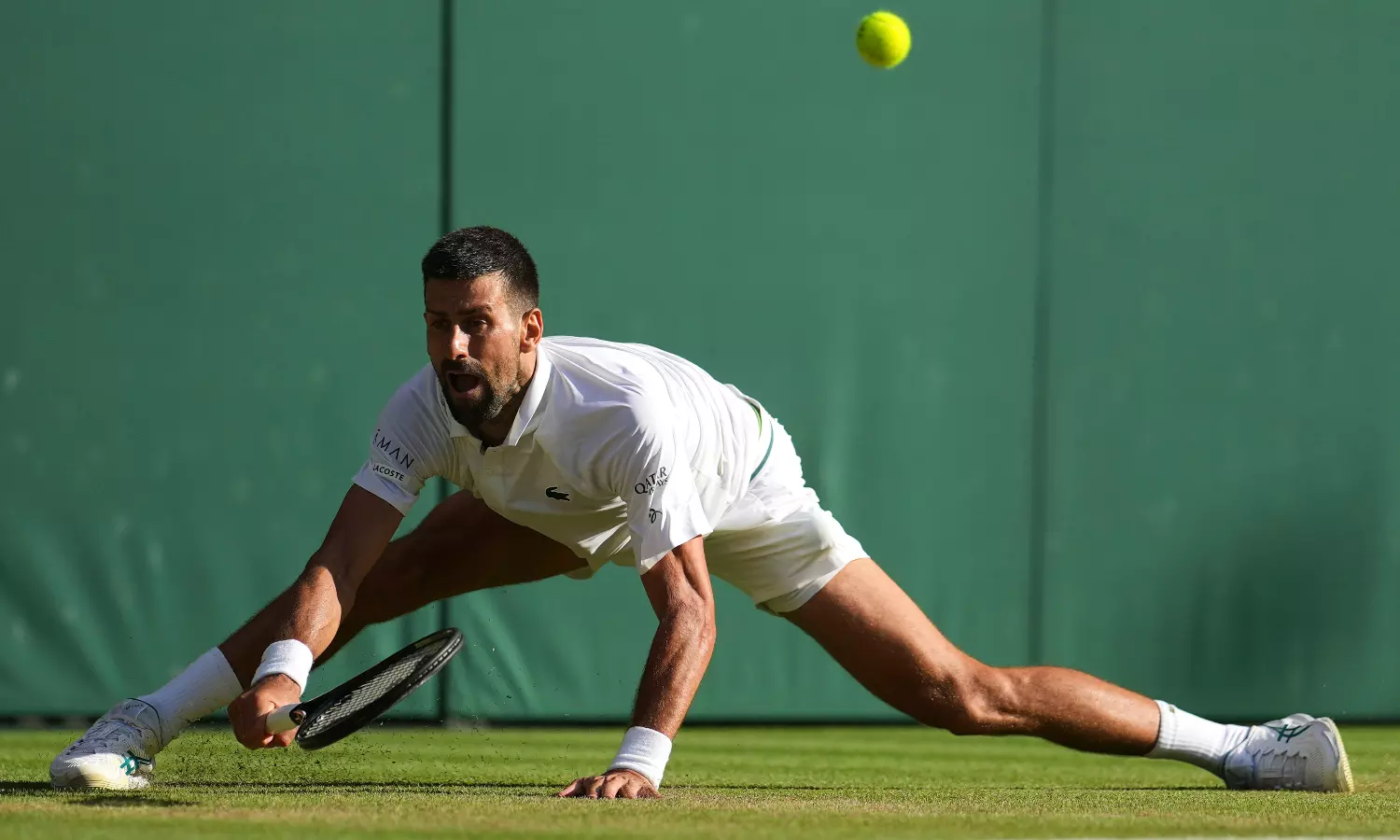 Djokovic did stretches and breathing exercises at changeovers. He whacked his shoe with his racket after one miss in the fourth set. He seemed bothered at times by the bright sun above Centre Court.