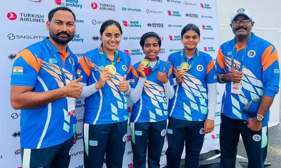 World No. 1 Indian women's compound team, which won all the three gold medals that were up for grabs in 2024, failed to compete as three members -- world champion Aditi Swami, Madhura Dhamangaonkar and Taniparthi Chikitha -- were unable to travel to Aurburndale, Florida, after failing to secure their US visas on time.