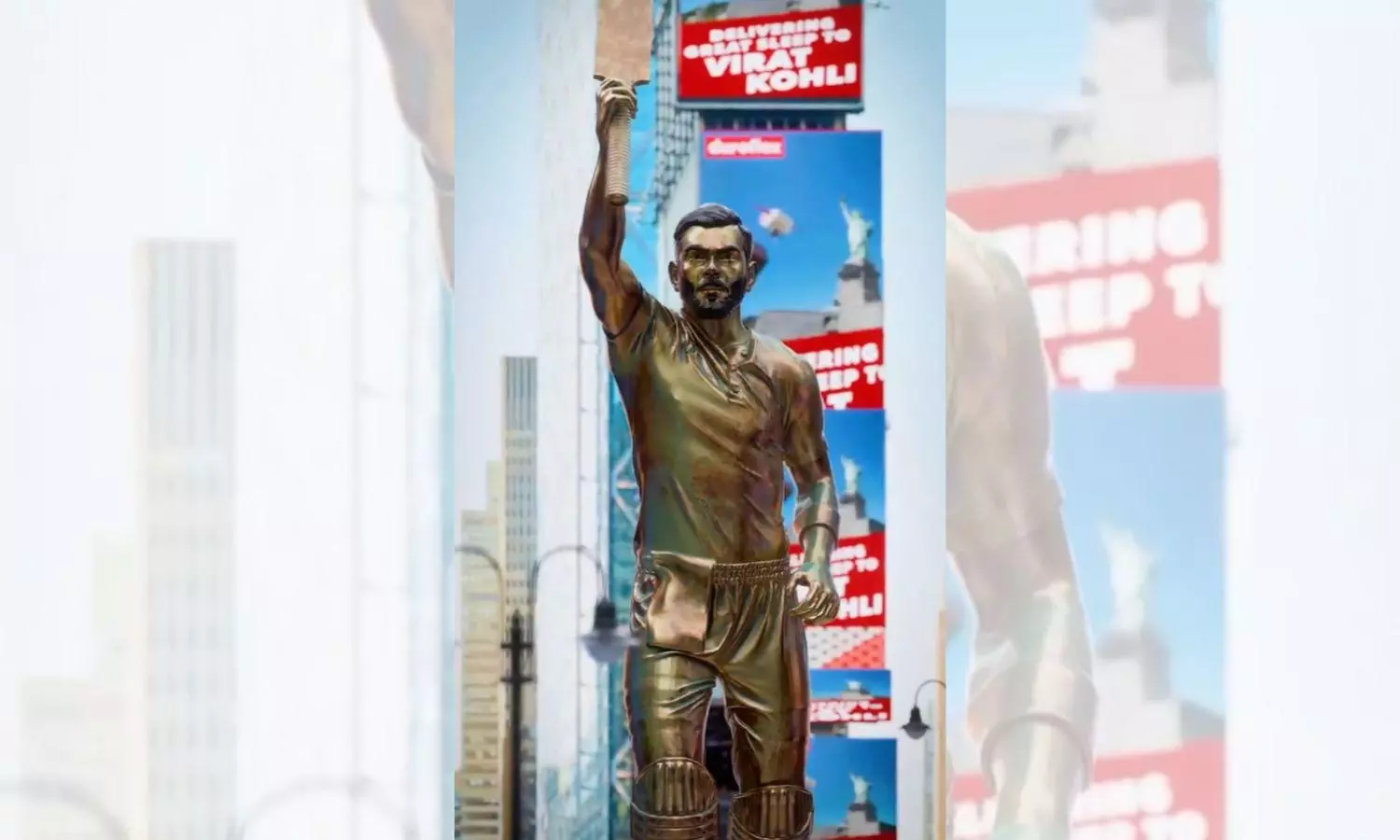 Just Unveiled :A larger-than-life statue of Virat Kohli at the iconic Times Square.