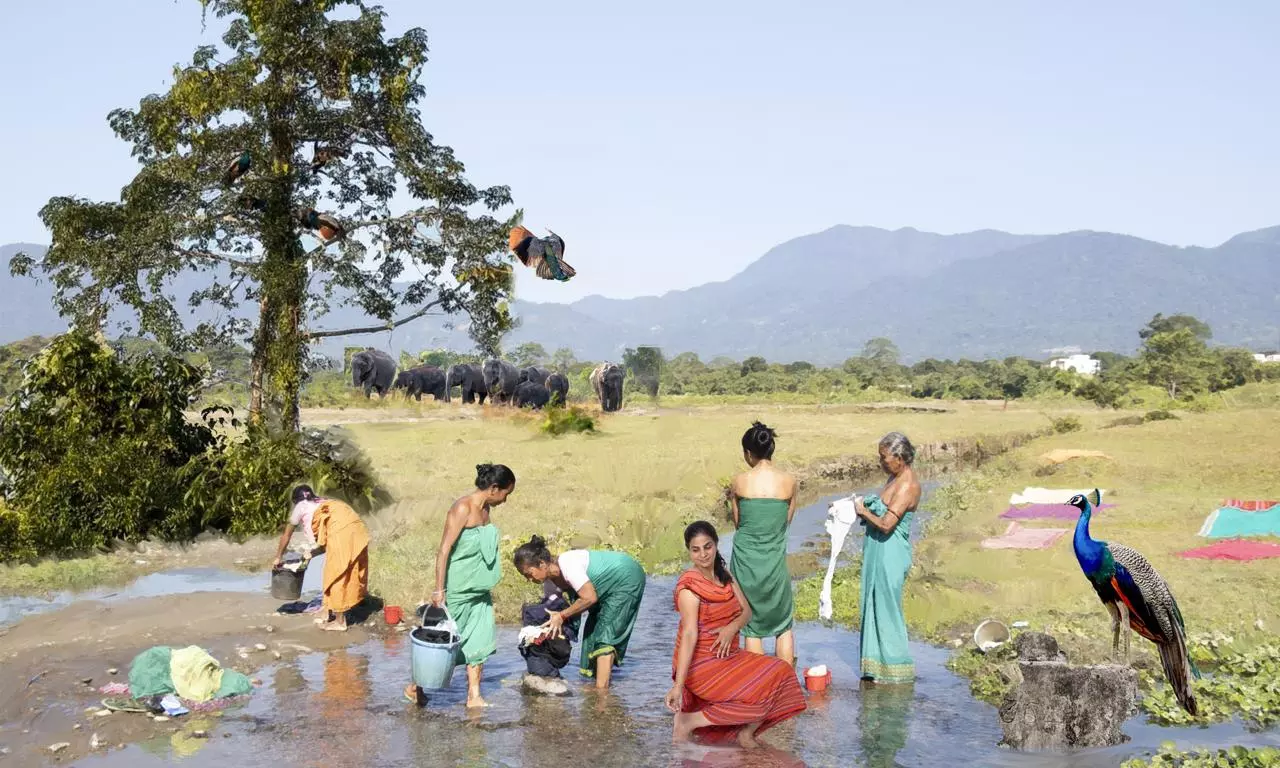 Spanning works since 2017, the show journeys from Uppada’s fishing villages and Araku’s tribal women to Assam’s Manas region, while reimagining icons like Mona Lisa with Mask and Panchkanyas through layered narratives of fragility, strength, and feminist agency.
