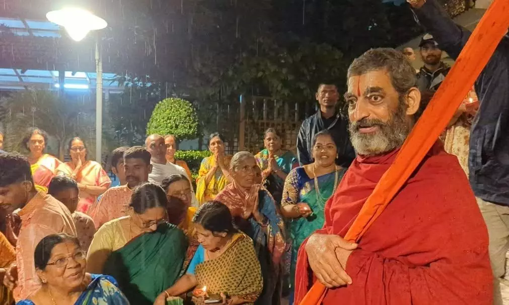 Once sidelined by the previous BRS boss, Chinna Jeeyar Swami is making a quiet, steady comeback. Insta followers are now treated to regular updates, and he’s just back from a successful overseas trip. Devotees thronged to welcome him, and politicians are queuing for blessings. Stationed at the JIVA campus, he’s set to embark on his sacred Chaturmasya Deeksha.