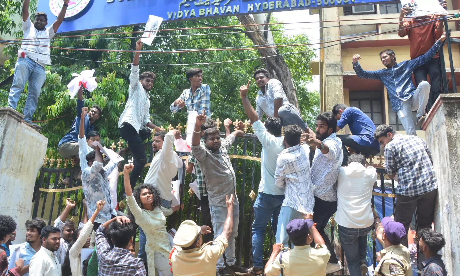 Telangana: SFI Activists Climb Gate of Intermediate Board