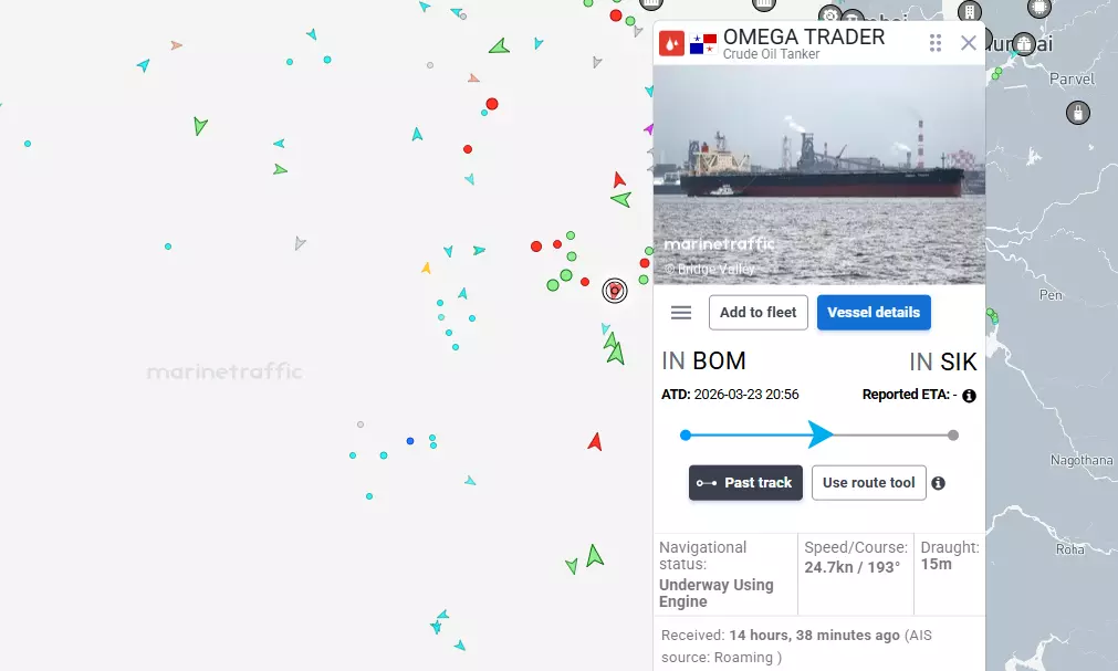 Its current status as tracked by Marine Tracking shows that the vessel, with a PANAMA flag, has departed from the Mumbai port, and is in transit to Sikka port in Gujarat.