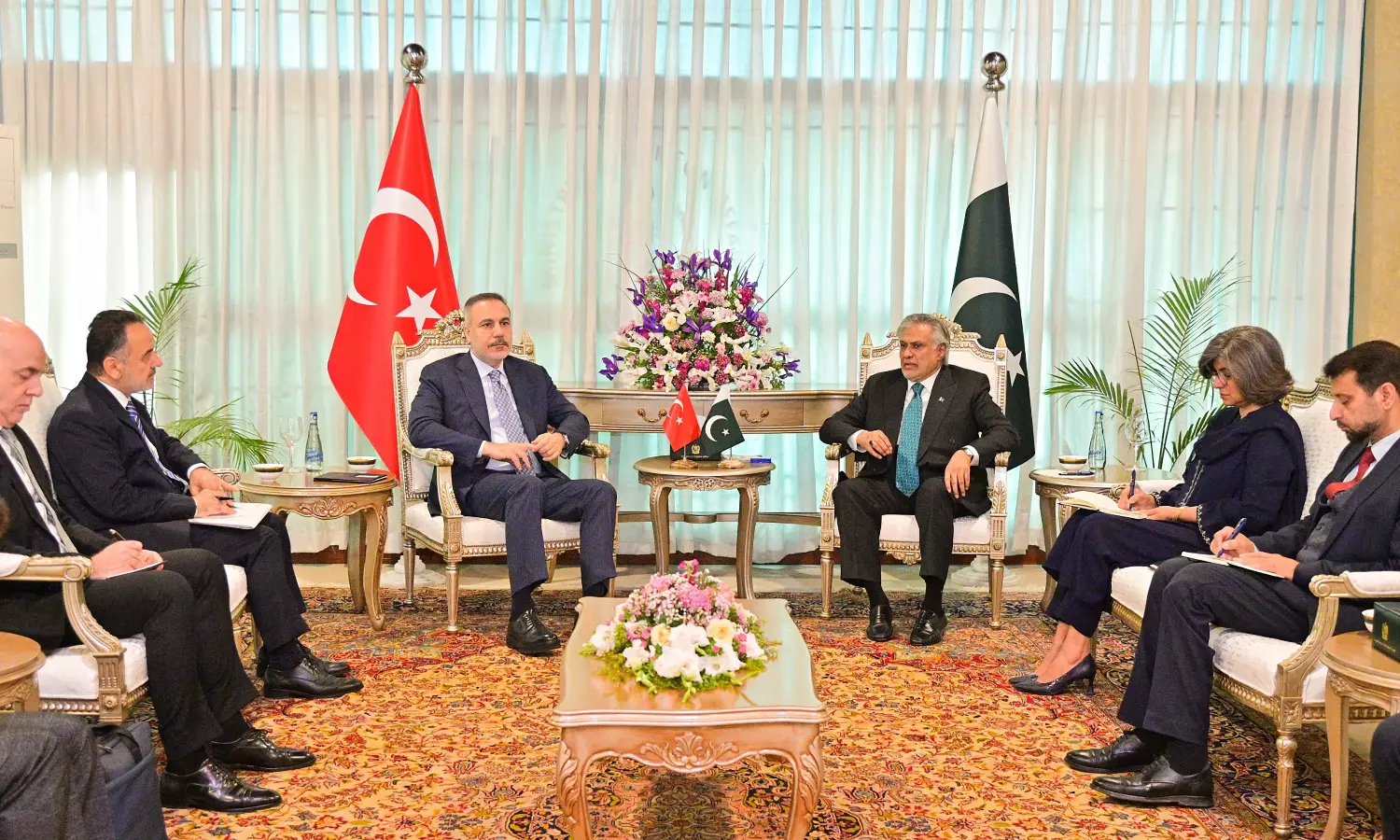 Pakistan said foreign ministers from Saudi Arabia, Turkey and Egypt were participating in the talks in Islamabad