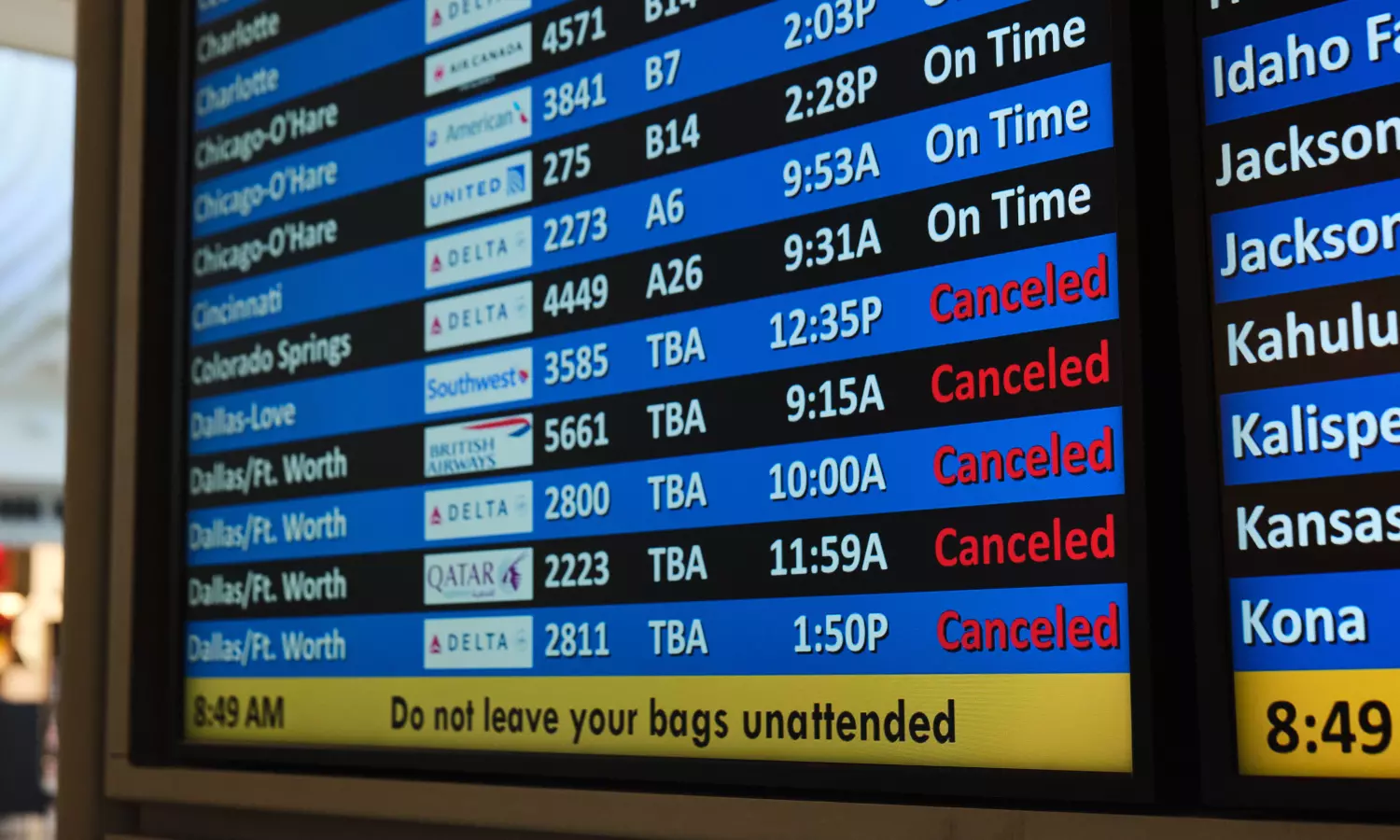 As of 1 p.m. ET, more than 3,700 flights were canceled Saturday across the country, according to the flight tracking website FlightAware. Almost 8,000 flights were called off for Sunday. Among the hardest hit airports were Dallas-Fort Worth International Airport, Nashville International Airport and Charlotte Douglas International Airport.