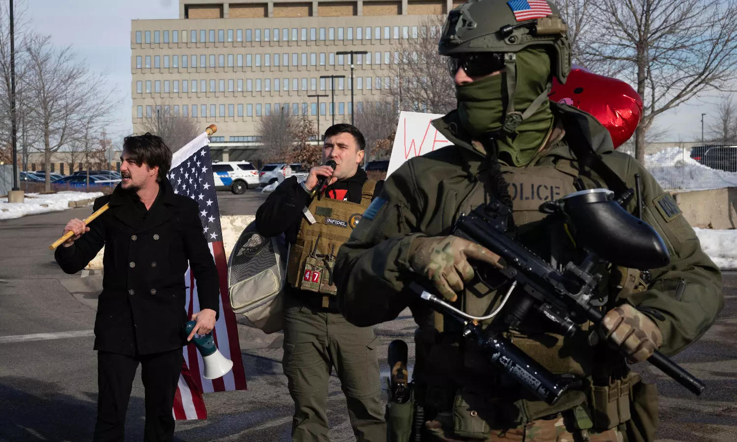 On Friday, protesters were outside a federal facility serving as a hub for the immigration crackdown that began Tuesday in Minneapolis and St. Paul. That evening, hundreds protested outside a hotel in downtown Minneapolis, banging on pots and drums and carrying signs that said, “ICE Out" and “Don't Shoot.”