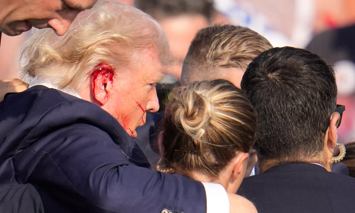 BUTLER, Pa: Former President Donald Trump was the target of an apparent assassination attempt Saturday at a Pennsylvania rally, days before he was to accept the Republican nomination for a third time. A barrage of gunfire set off panic, and a bloodied Trump, who said he was shot in the ear, was surrounded by Secret Service and hurried to his SUV as he pumped his fist in a show of defiance.