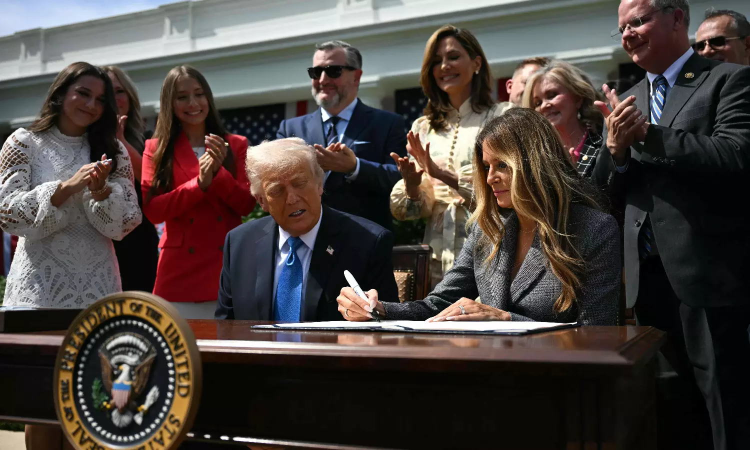 First Lady Melania Trump endorsed the bill in early March and attended the signing ceremony in a rare public White House appearance.