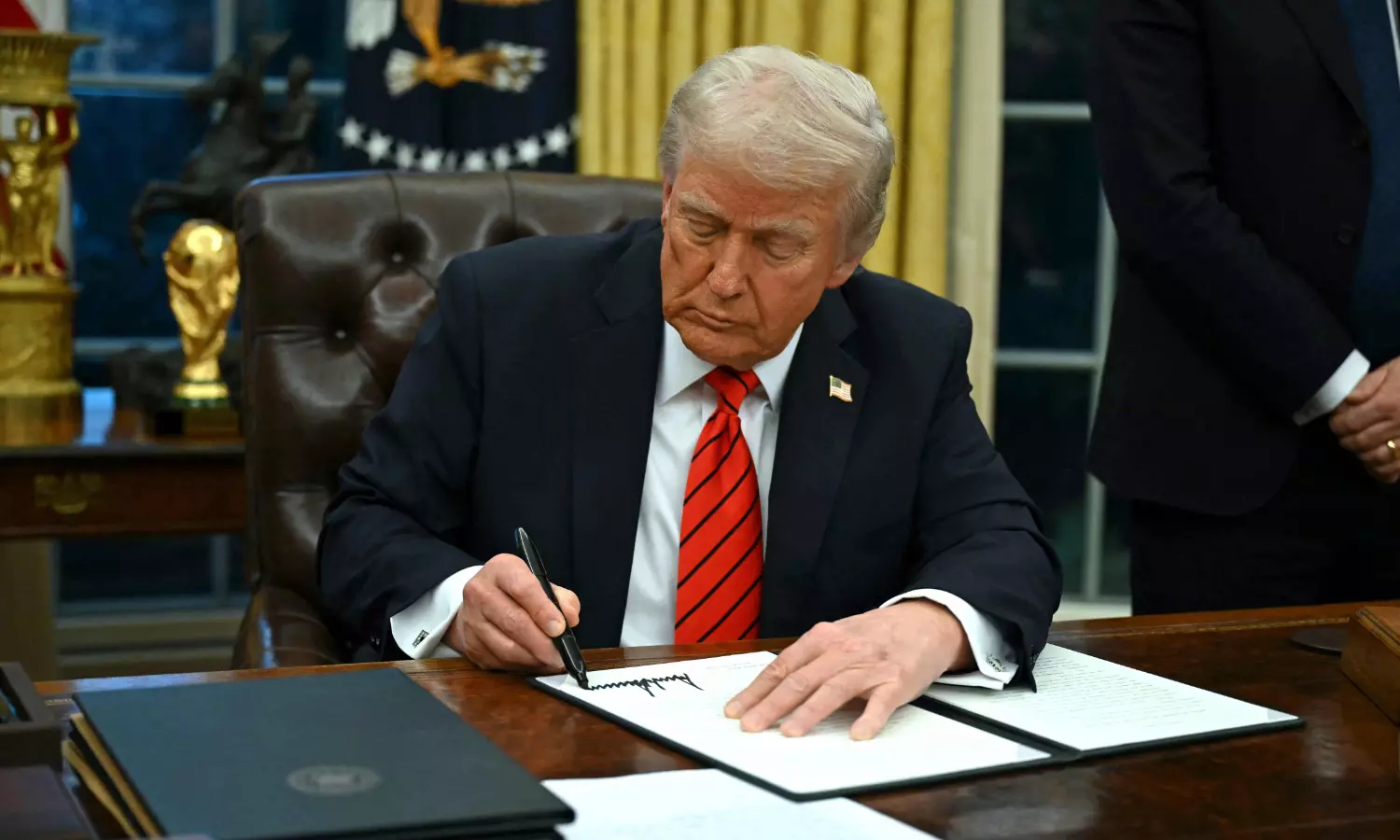 Before he signed executive orders imposing the measures, global stock markets rose