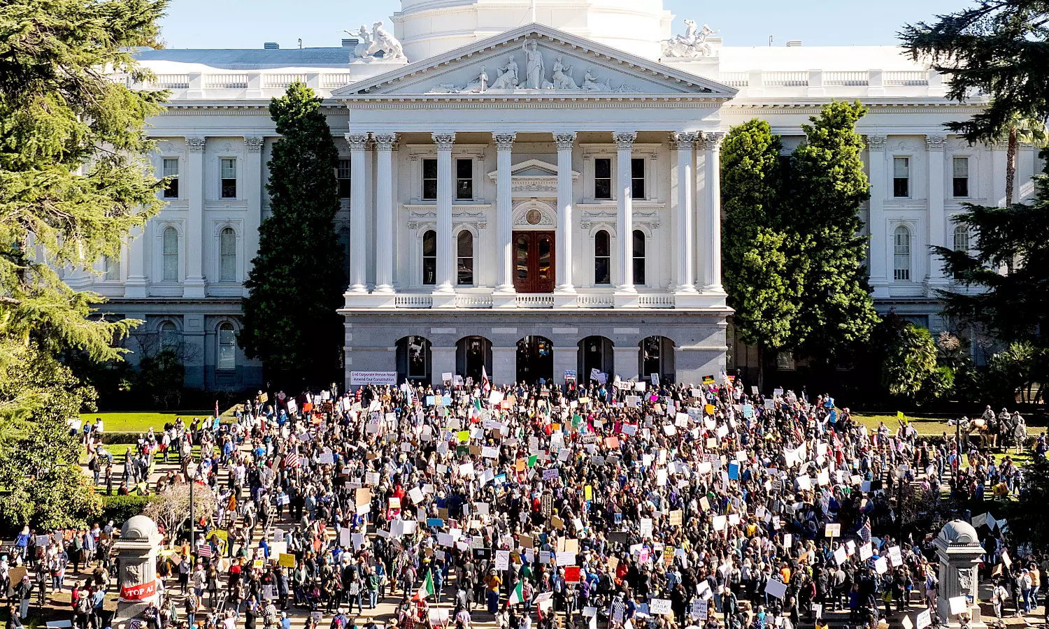 Outside the state Capitol in Lansing, Michigan, a crowd of hundreds gathered in freezing temperatures.