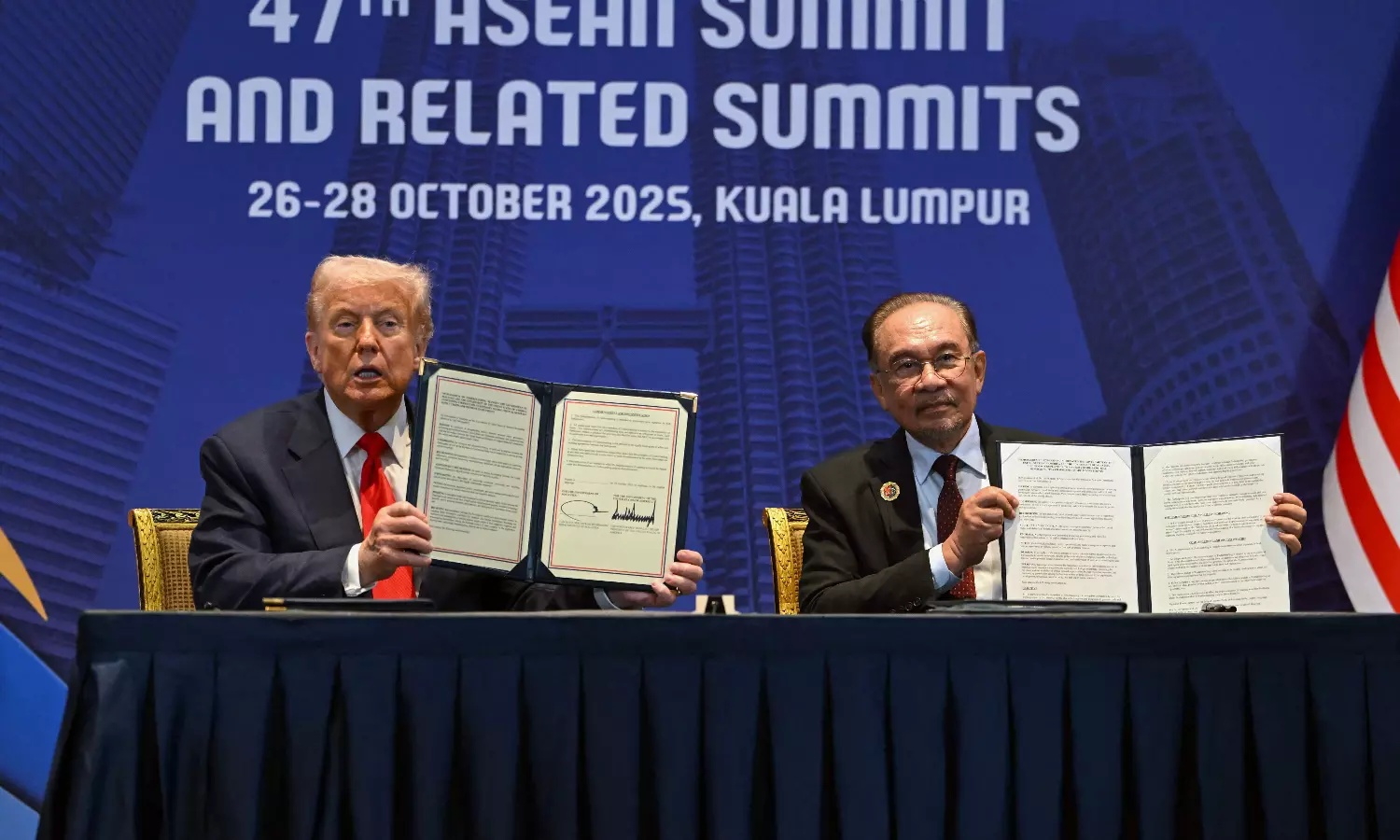 The deal was signed by Thai Prime Minister Anutin Charnvirakul and Cambodian Prime Minister Hun Manet together with Trump and Malaysian Prime Minister Anwar Ibrahim, following a bloody border dispute this year.