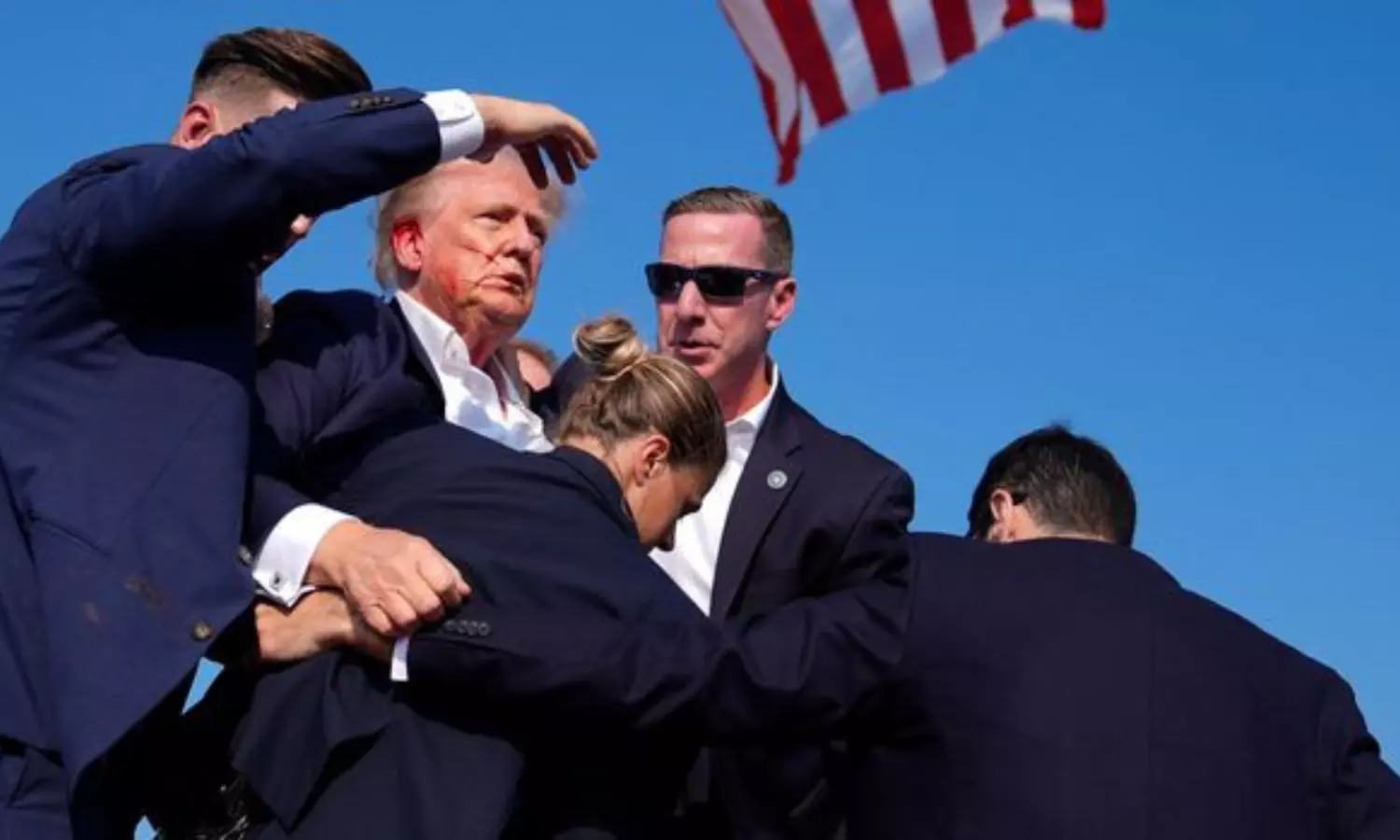 Donald Trump was on stage at a campaign rally in Pennsylvania's Butler before gunshots rang out and Secret Service agents stormed the stage, The Hill reported. The Secret Service agents surrounded the Republican candidate and escorted him off the stage, with blood visible across his face.