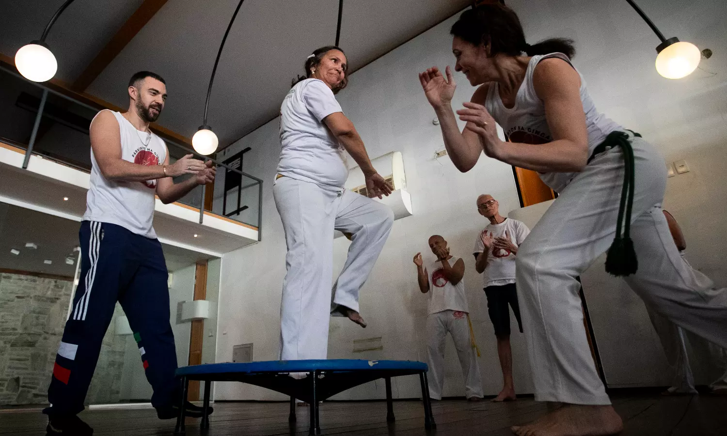 Capoeira helps improve balance, coordination and strength, with music loosening up tense bodies, Peixoto says.
