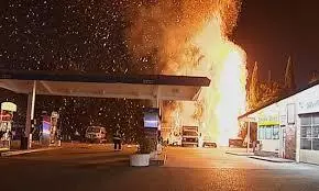 A drone struck and ignited a fire at a petrol station in the center of Kharkiv, Ukraine’s second-largest city, Mayor Ihor Terekhov said.