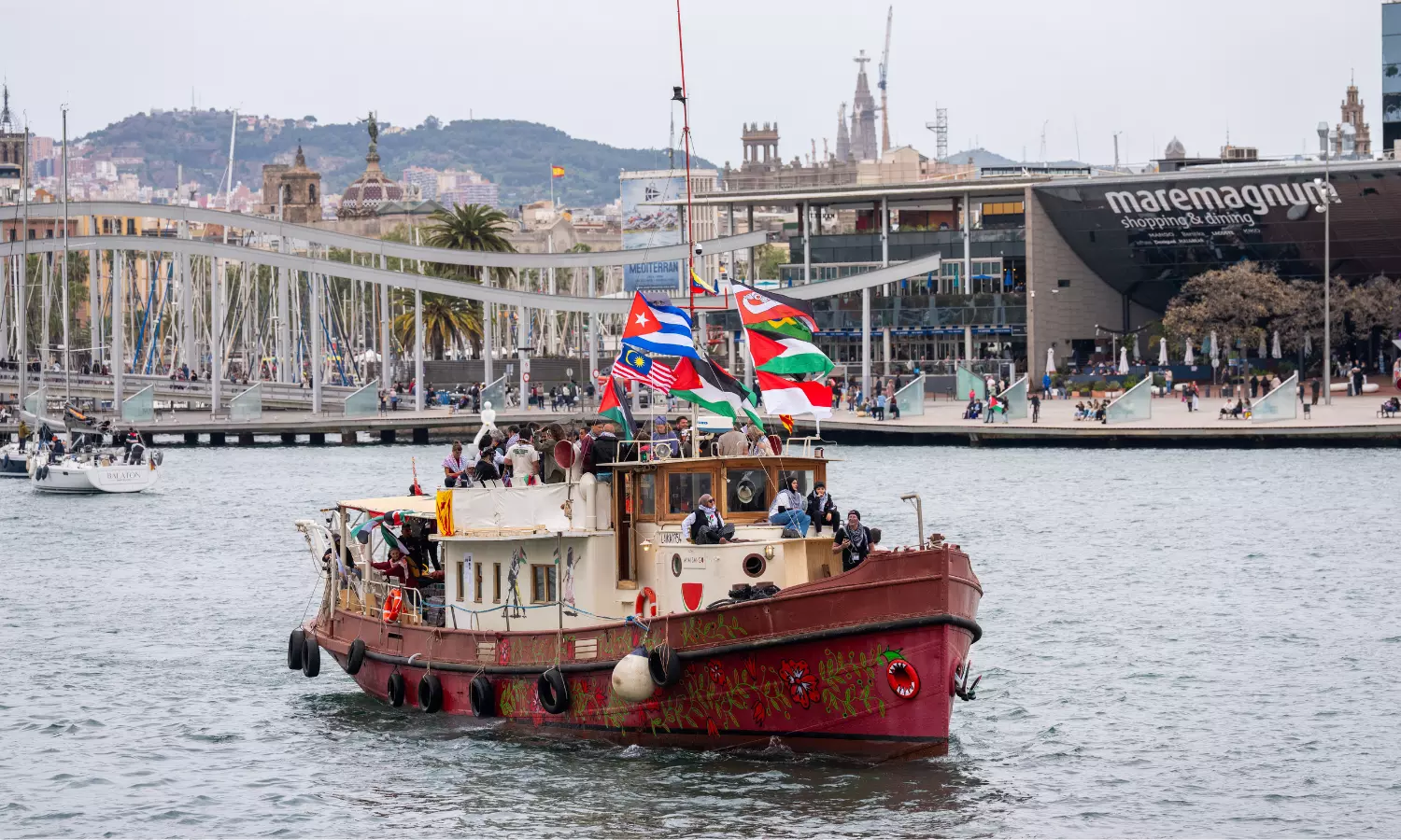 Barcelona: Dozens of boats carrying activists and aid for Palestinians in Gaza set sail from the northeastern Spanish city of Barcelona on Wednesday.