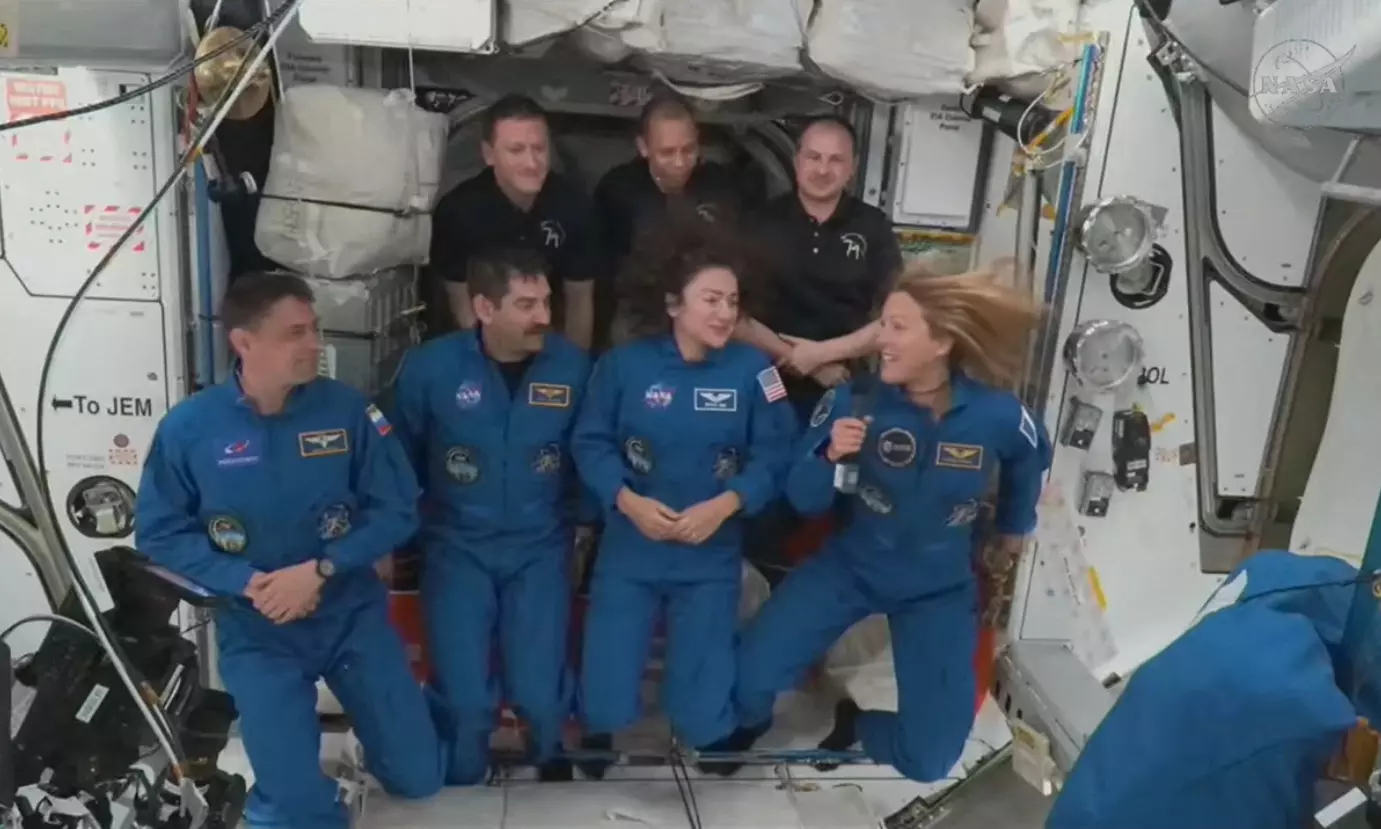 Moving in for eight to nine months are NASA's Jessica Meir and Jack Hathaway, France's Sophie Adenot and Russia's Andrei Fedyaev. Meir, a marine biologist, and Fedyaev, a former military pilot, have lived up there before. During her first station visit in 2019, Meir took part in the first all-female spacewalk.
