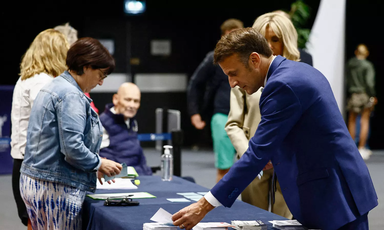 Macron voted in a Paris voting station along with his wife, Brigitte Macron. Earlier, Marine Le Pen, leader of France’s resurgent National Rally, cast her ballot in her party’s stronghold in northern France.