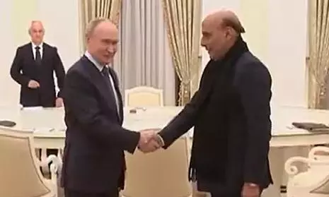 Moscow: Defence Minister Rajnath Singh met Russian President Vladimir Putin at the Kremlin on Tuesday, during which both leaders expressed that India-Russia partnership holds immense potential and combined efforts will pave way for remarkable outcomes.