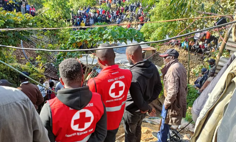 Rescue teams work to free miners trapped after a gold mine partially collapsed in Kakamega