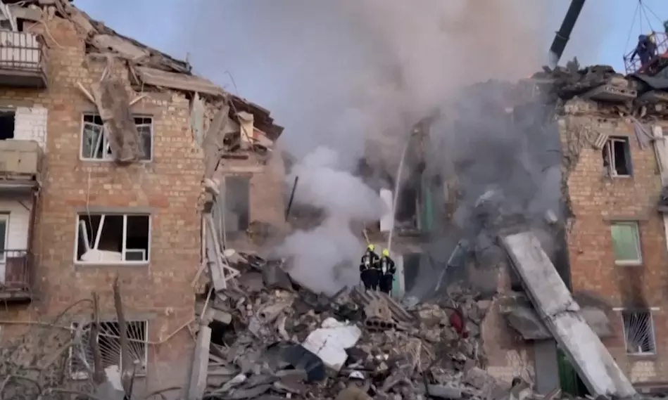 Kyiv: Russia launched a major air attack on Kyiv early on Thursday that included a rare strike on the center of Ukraine's capital , killing at least 21 people, wounding 48 and damaging European Union diplomatic offices, authorities said.