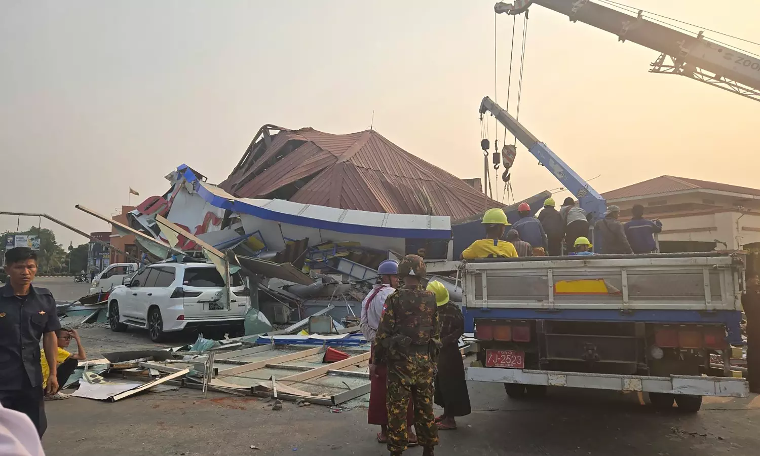 Hundreds of casualties arrived at a major hospital in Naypyidaw where the emergency department entrance had collapsed on a car.