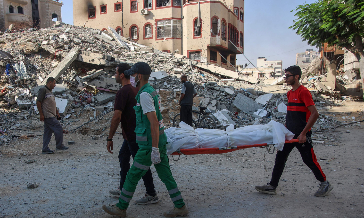 Videos circulating on social media showed civil defense workers wrapping bodies, including several women, in blankets on the rubble-strewn streets of Tal al-Hawa and Sinaah. A hand poked out of the smashed concrete where workers dug into a collapsed building. Other video showed burned-out buildings.
