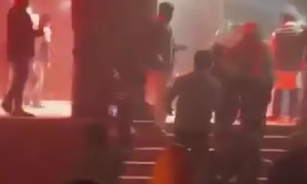 However, just before the programme was due to begin, a group of outsiders tried to force entry after being turned away, throwing bricks and stones and attempting to seize the stage.