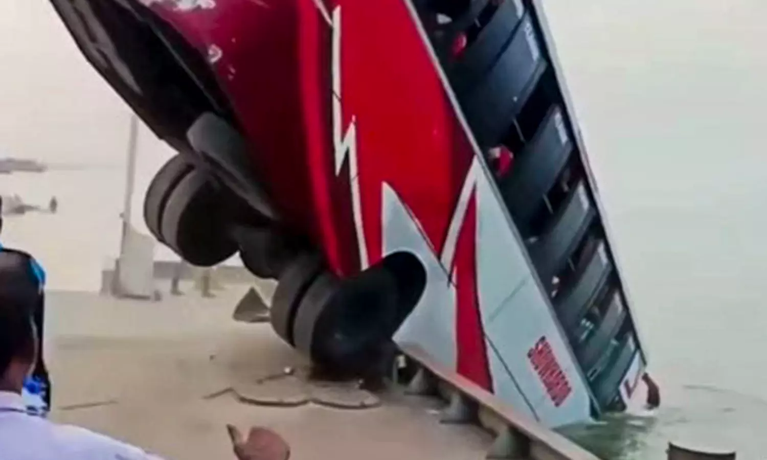 The incident occurred when a bus carrying around 40 passengers fell into the river from a ferry