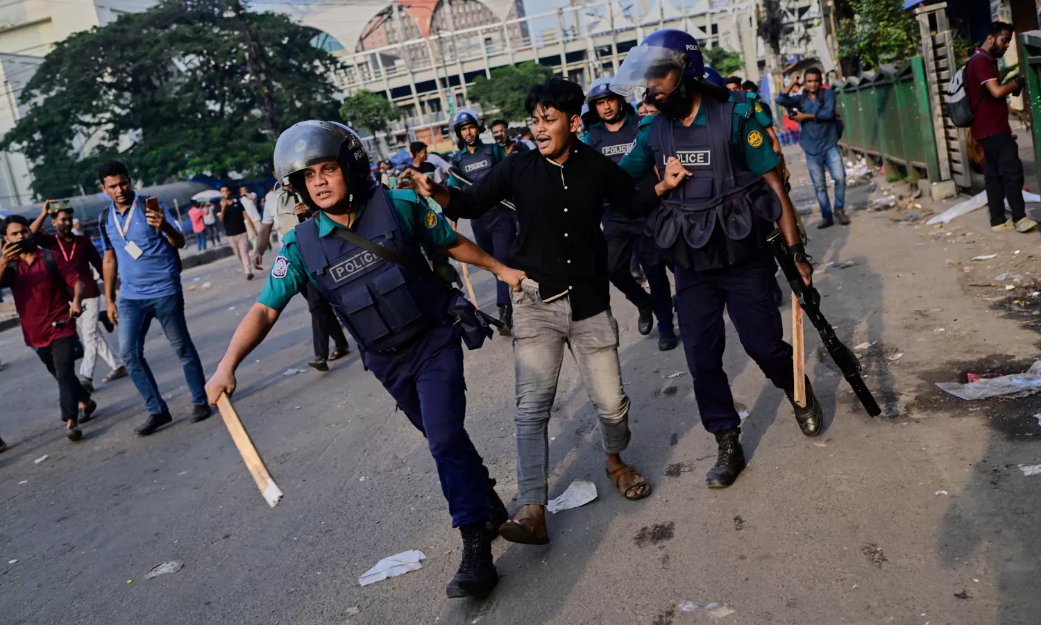 Elsewhere in Dhaka, students broke through security barricades and entered the Bangladesh Secretariat complex, the country’s administrative headquarters. Security officials used stun grenades and tear gas to disperse them.
