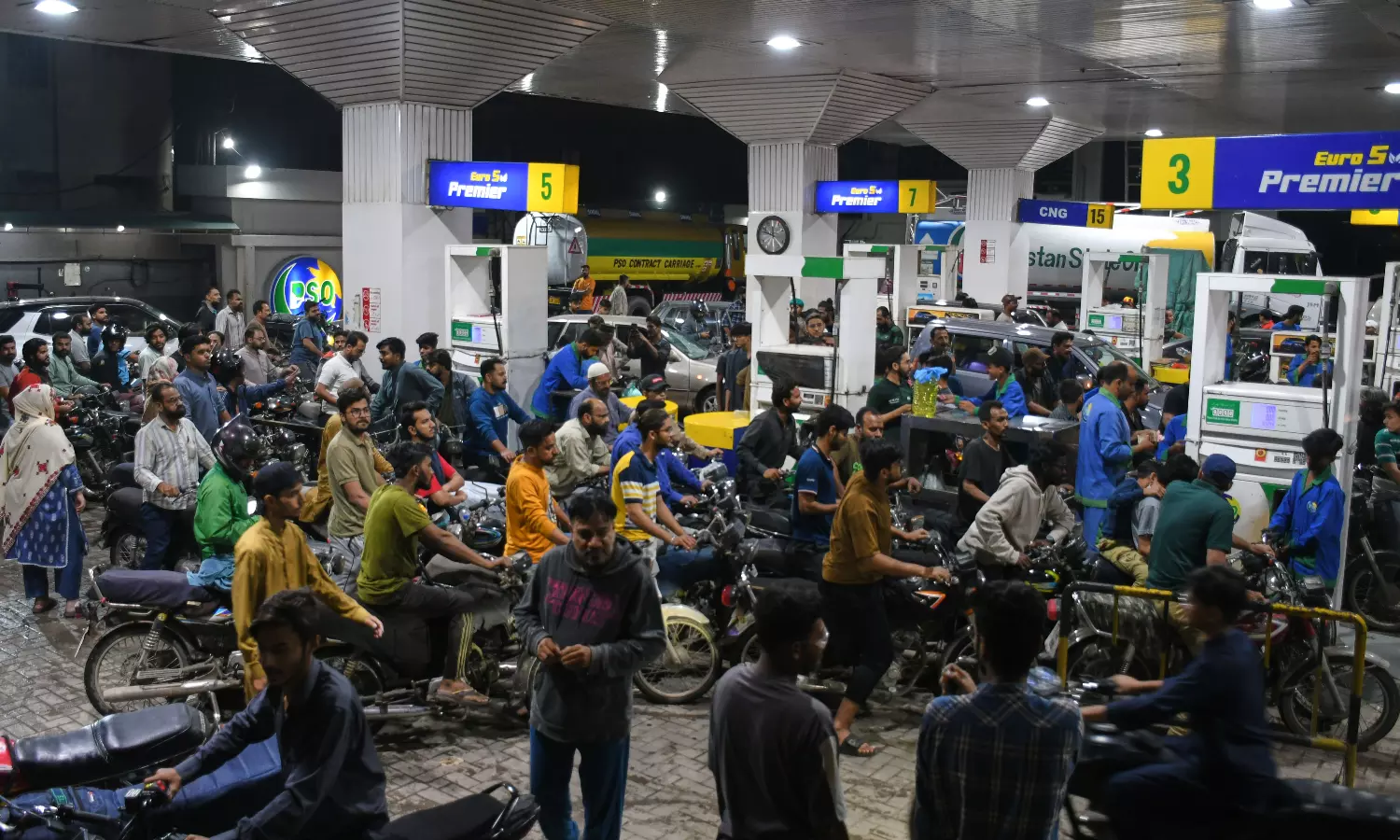 Long queues of motorbikes were also seen at fuel stations.