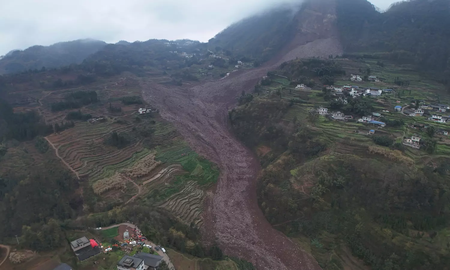 The disaster was caused by recent heavy rainfall and geological conditions, authorities said in a news conference on Sunday. These factors transformed a landslide into a debris flow, resulting in an accumulation of debris stretching about 1.2 kilometers (0.7 miles) in length, with a total volume exceeding 100,000 cubic meters (3.5 million cubic feet).
